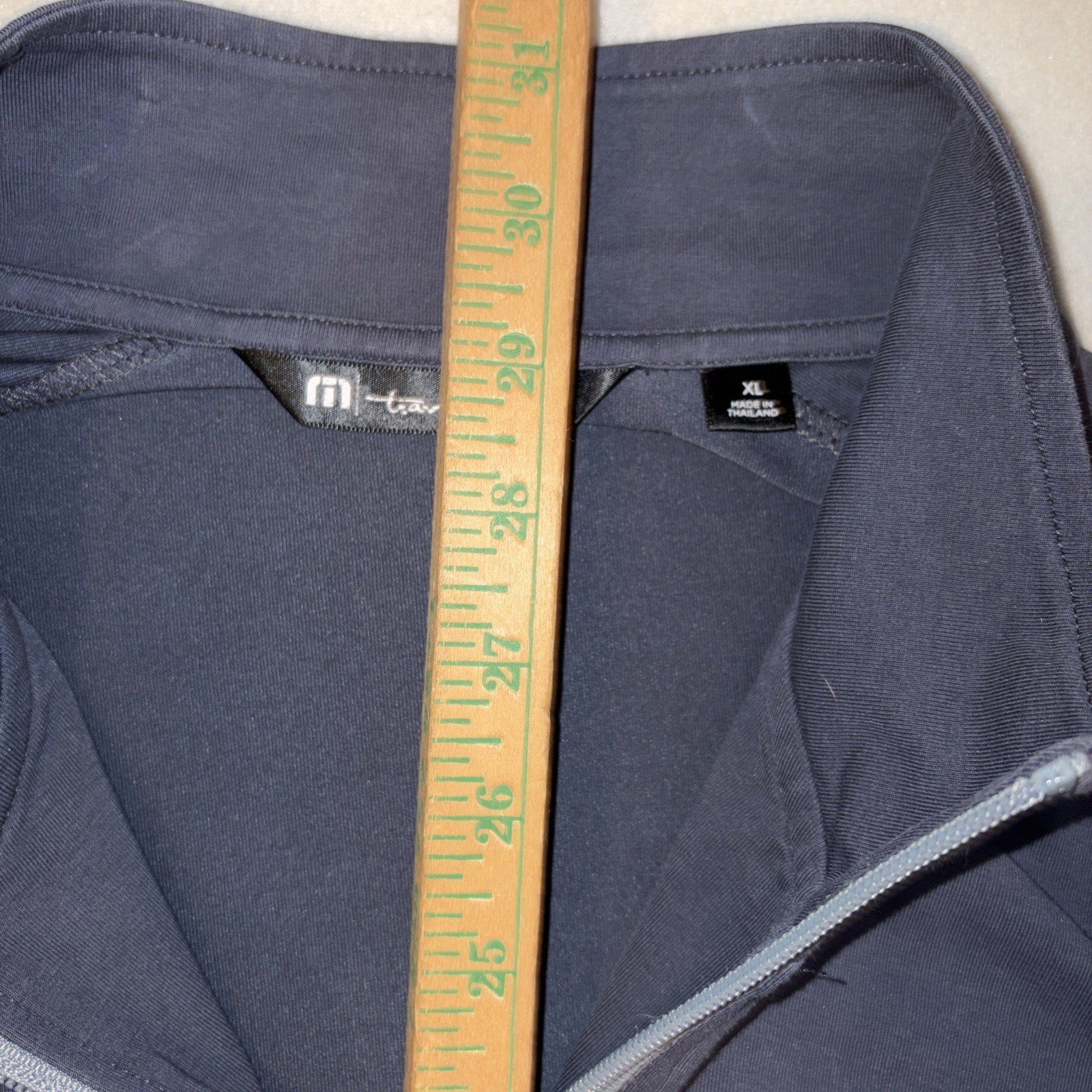*Has some sun fading but still in good condition The Travis Mathew 1/4 Zip Golf Sweater in men's XL is a stylish and versatile pullover designed for both activewear and casual occasions. Made from a blended fabric of polyester and spandex, this sweater features a quarter zip closure and a stand-up collar for added comfort and style. The solid gray color and subtle logo accents make it a classic choice for any season, while the quarter zip and pockets add practicality for activites like golfing or walking. Machine washable and featuring a regular fit, this sweater from Travis Mathew is a must-have for the modern man seeking designer outdoor fashion.