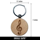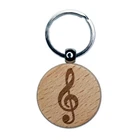 Treble Clef Music Engraved Wood Round Keychain Tag Charm