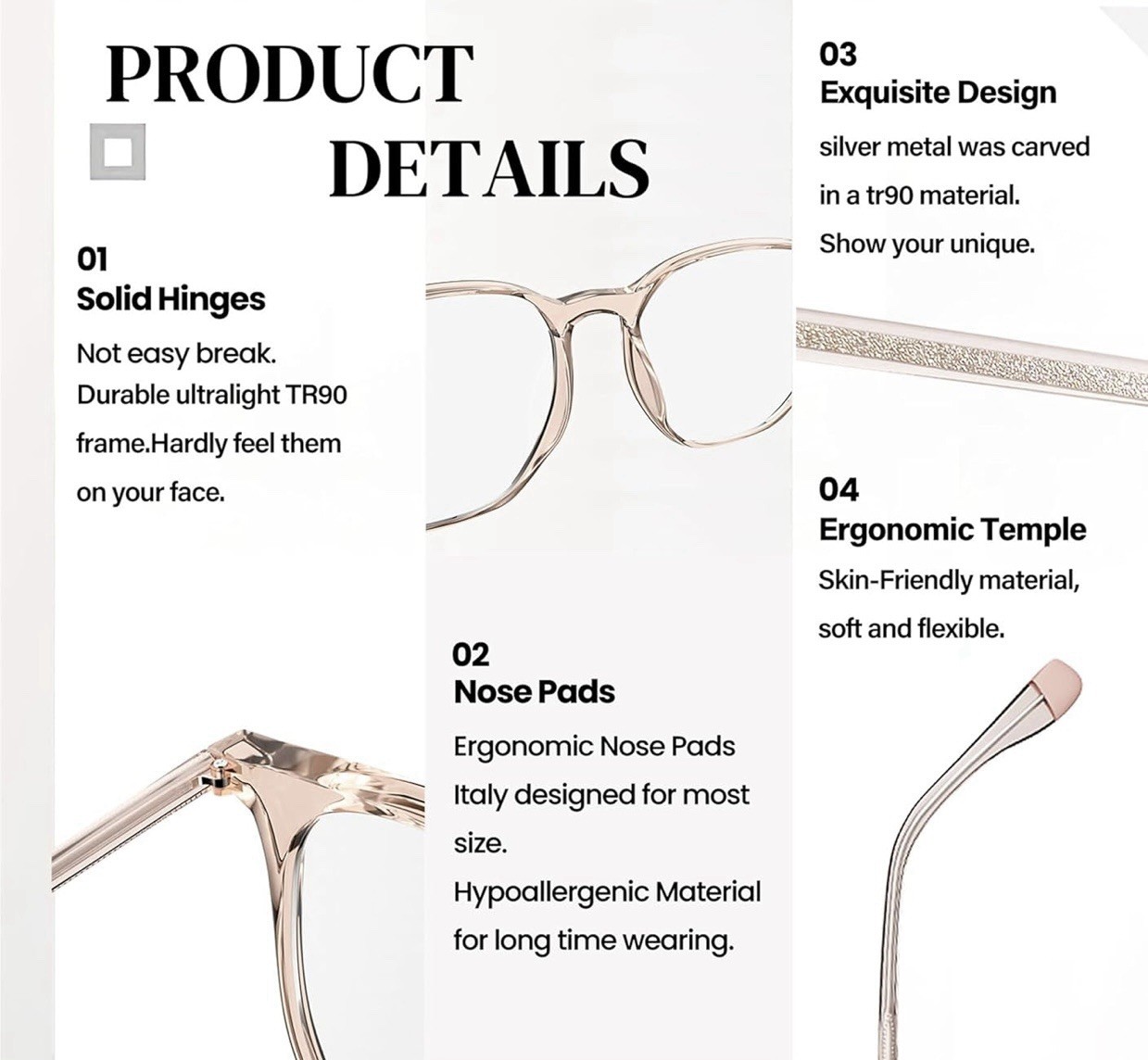 [High-Quality Blue Light Blocking Glasses]: Blocks 99.99% of harsh blue light rays up to 500nm. Ideal for those who spend long hours on computers, tablets, phones, or other digital devices. • [Reduce Eyestrain & Improve Sleep]:These blue light glasses have UV400 protectionlens to block harmful rays that cause eye fatigue, blurred vision, and headaches from extended digital device use. • [Ergonomic Fashion Design]: These blue light blocking glasses with ergonomic temples, a unique hexagon frame, and a lightweight 19g TR90 build. These computer glasses fit most face shapes and sizes, offering skin-friendly comfort for extended wear. • [Versatile Glasses]:These blue light blocking glasses protect your eyes, prevent headaches, improve sleep, and serve as stylish eyeglass frames. Functional and attractive! • [Package Details]: Includes a stylish case, perfect as presents for your families and friends on Christmas or birthday. Contains a white carton case, a blue light test card and pen, and a cleaning cloth.