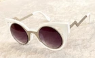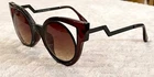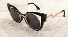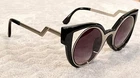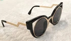 U.S. SELLER FAST & FREE SHIPPING This top trending yet unique high quality designer fashion 'CAT-EYE' sun-glass features a large metal trim with plastic frame. 100% UV Protection. Available in: Black. Rose-gold/black. Silver/black. White. Brown Measurement: The length from the edge of the left lens to the edge of the right lens is 5.75 inches. Top to Bottom is 2.25 inches