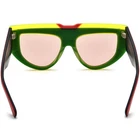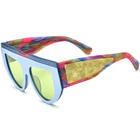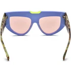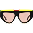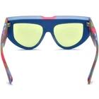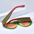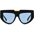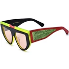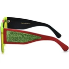 These bold cat-eye sunglasses feature a unique shield-style design, combining bold acetate frames with striking glittery temple accents for a dynamic and confident look. Crafted with durable acetate, they are ideal for making a statement at outdoor events or casual wear. Their full-coverage lenses offer excellent UV protection, while the ergonomic temple arms ensure a secure and comfortable fit. Perfect for oval and diamond faces, these frames bring a stylish edge to any outfit. SPECIFICATIONS Block 100% UVA / UVB / UV400 wavelengths : Yes Polarized lenses : Yes Wrap & Angle : Low Rim: Full Rim Shape: Cat-Eye Material: Acetate FRAME SIZE Frame Width: 135 mm Lens Width: 52 mm Bridge: 18 mm Temple Length: 148 mm Lens Height: 46 mm Frame Weight: 59 grams
