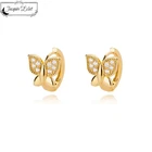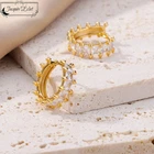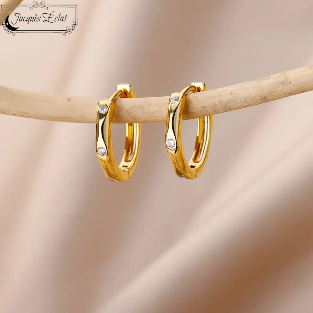 Trendy Gold Plated Zircon Hoop Earrings for Women – Stainless Steel