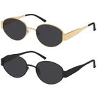 High definition UV400 lenses reduce sunlight glare and protect your eyes from dangerous UVA and UVB rays. This stylish oval sunglasses frame is made of high quality steel for men and women who care about style and personality. For outdoor activities, selfies, shopping, driving, traveling, biking, hiking, etc., these vintage Oval sunglasses are excellent choices. lens width:53mm (2.08in), hinge to hinge-138mm (5.43 in), lens height-41mm (1.61in), bridge width-19mm (0.74in), temple length-133mm (5.23in) Packing Oval sunglasses *2, glasses bag *1, glasses cleaning cloth *1, glasses case *1.