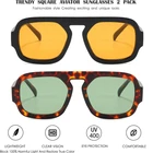 Trendy Square Aviator Design: The sunglasses with its unique design is a great choice as a daily fashion accessory for your wardrobe collection. these sunglasses keeping up closely with the latest fashion trend. the frame can match with various facial shapes. 100% UV400 Protection Lenses: high quality UV400 lenses can filter out sunlight reflected glare and protect your eyes from long term damage by blocking harmful UVA and UVB rays. High Quality: The trendy square sunglasses use a light weight acetate frame, one-piece nose pads and high-definition lenses to ensure long-term wear without pressure on the nose, giving you a comfortable wearing experience. Suitable: vintage aviator sunglasses are suitable for many occasions, such as driving shopping, traveling, taking photos, party and so on, is not to be missed fashion items. what are you waiting for? let's get moving. Package Dimensions and Contents: Lens width: 53mm (2.08 inches), lens height: 43mm (1.69 inches), temple length: 142mm (5.59 inches), nose bridge: 20mm(0.78inches). the package square sunglasses*2, microfiber pouch*2, glasses box*1.