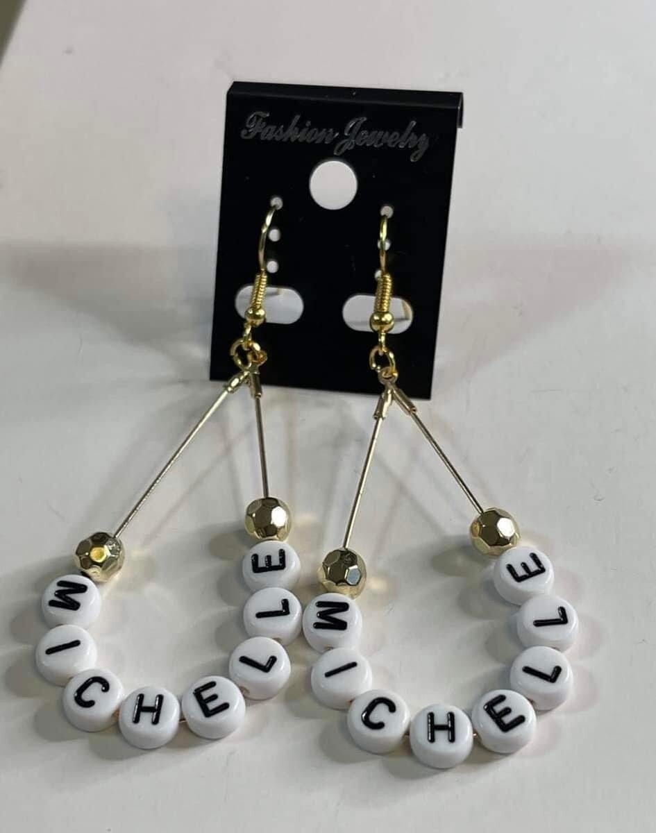 Get your say my name earrings. These are a statement piece. Just put your name and I got you.
