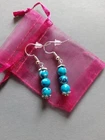 Blue rainbow earrings with crystal roll'on. Earring hooks are sterling silver 925. crystals in roll'on tiger eye, unakite, turqoise. Essential oil. lemon grass, basilica, relax, eucalyptus, cedar, rosewood and MCT-oil. Increasing tho amount of light and awareness.