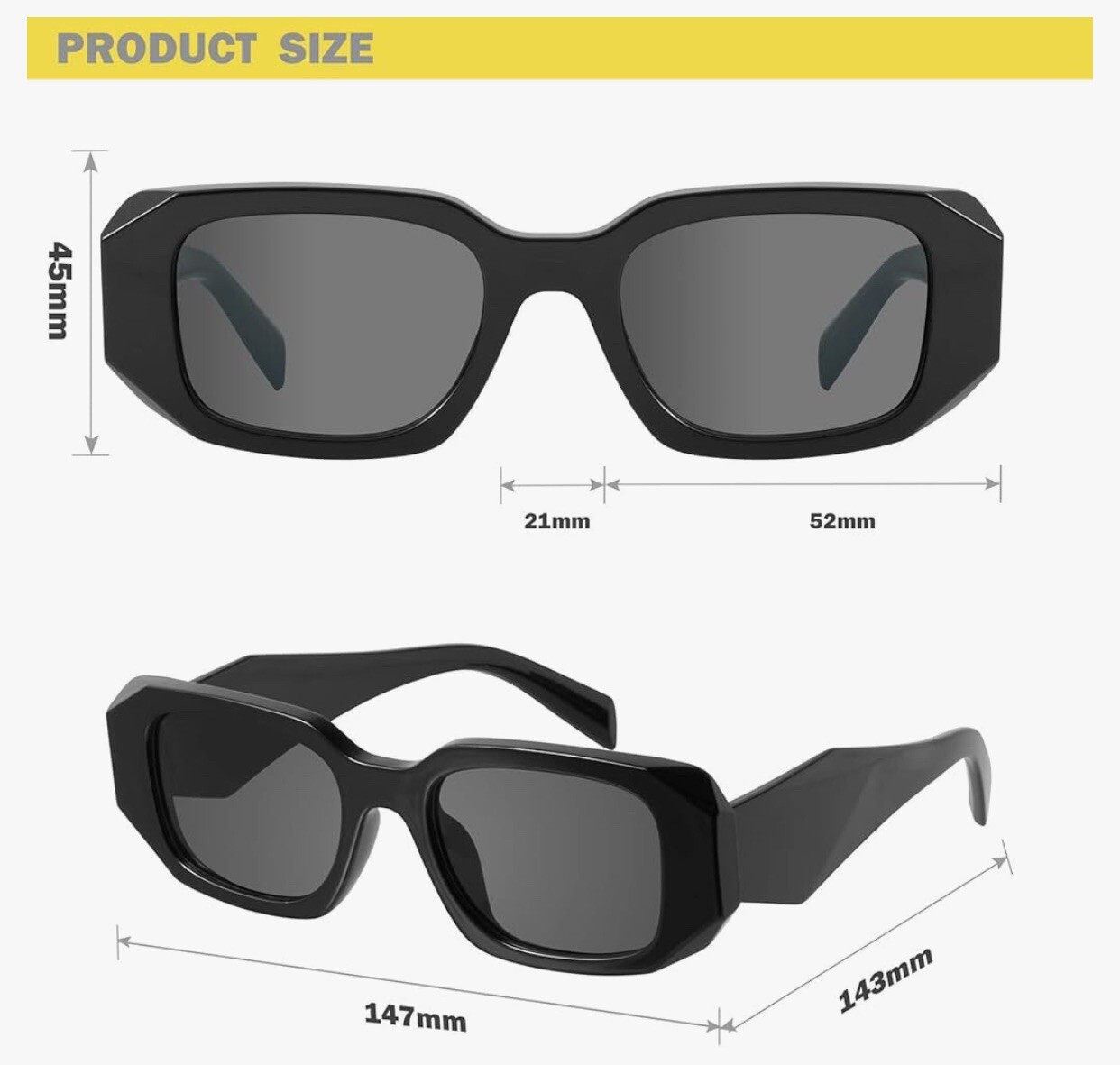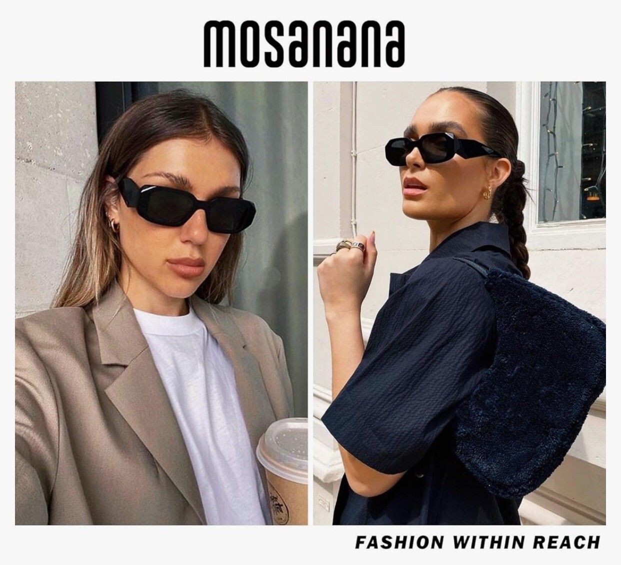 About this item [AVANT-GARDE DESIGN]Our newest rectangle model is also our sleekest,these retro sunglasses feature thick and reinforced temples for those who choose to express their strength, confidence, and uniqueness through a bold and distinctive personal style [UV400 PROTECTION LENS] our lens can block 100% of UVA &UVB rays and offer superior anti-glare protection,protect your eyes against long term UV damage and give you crisp vision [HIGH QUALITY MATERIALS]These vintage rectangle sunglasses are made of premium plastic and reinforced metal hinges for a longtime comfortable wear.These distinctive sunglasses know how to turn heads while fitting comfortably and confidently on yours [PERFECT FOR ANY OCCASION]No matter where you go,at the mall, in the car, on the run or by the pool, these avant-garde sunglasses will pull together your look and make people think to themselves, Wow Mosanana's Motto - At Mosanana,our motto is that no need to pay a fortune to get a perfect pair of sunglasses.We are glad to have achieved balance between Quality, Fashion and Price