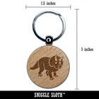 Triceratops Dinosaur Engraved Wood Round Keychain Tag Charm