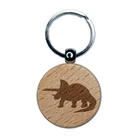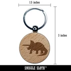 Triceratops Dinosaur Solid Engraved Wood Round Keychain Tag Charm