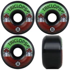 Product Description Triclops Skateboard Wheels Night Riders 55mm 95A with Bones Reds Bearings This package includes 1 set of wheels (4wheels) and 8 bearings. Solid 55mm wheel from Triclops. All purpose wheels for streets, ramps, and parks. Custome formula black urethane - just a little softer for a super smooth ride. Bones REDS are manufactured to Bones Skate Rated specifications in a manufacturing facility dedicated to producing the highest quality skate bearings. They are inspected twice before being shipped to skaters and offer the greatest combination of performance, durability and low cost in the industry. Because they offer near Bones Swiss performance at a fraction of the cost, they have become the best selling bearings. BRAND Triclops MODEL Night Riders SIZE 55mm COLOR Black CONDITION Brand New The feeling of a new set of wheels is second to none. Well, maybe it’s second to saving a bunch of money. Get the best wheels at the best price from TGM Skateboards. We have hundreds of wheels available, no matter what you are looking for. Traditional skate wheels, cruiser wheels, longboard wheels…we’ve got them all at the absolute best prices available! Wheels are measured by Diameter (Width) and Durometer (Hardness). 50mm to 54mm with a hardness of 99A – 101A is the most common size wheel for street and park skaters, while 55mm to 64mm is typical for bowl and old school skaters. The larger the wheel, the longer the roll. The softer the wheel, the smoother the roll. Softer wheels are great for rough terrain and are also quieter (which is why filmers prefer large, soft wheels). Ultimately, it comes down to personal preference and the type of terrain the skateboard will be ridden on. 17 years being eBay's premier skateboard retailer with 350,000 positive feedback! With over 20,000 items in stock, we are experts on all aspects of skateboarding, longboarding, customer services, shipping speed and bang for your buck. Copyright ©2018 TGM Skateboards | All Rights Reserved