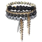 These bracelets are made of different gemstones and lava rock stones and agate.