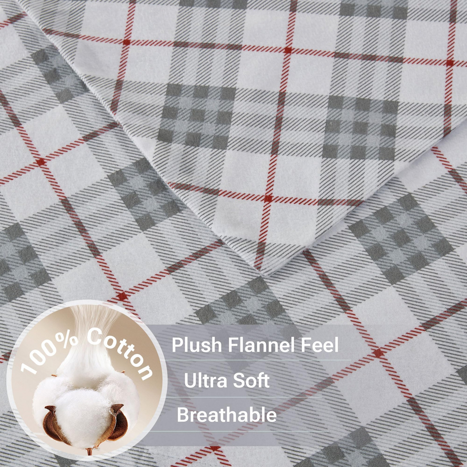 Keep warm and cozy with this ultra-soft cotton flannel sheet set, perfect for cold winter nights! Featuring a variety of prints these cotton flannel sheets provide a soft and inviting look. Machine washable for easy care. These cotton flannel sheets are also OEKO-TEX certified, meaning they do not contain any harmful substances or chemicals, ensuring quality comfort and wellness. Set includes: 1 Flat Sheet, 1 Fitted Sheet, 2 Pillowcases (1 in Twin/TwinXL sizes). The true north by cozy soft cotton flannel sheet set offers a charming and incredibly cozy update to your bedroom. Made from ultra-soft and warm cotton flannel, this cotton sheet set features a fun novelty print in soft colors, for an adorably comfortable look. Comes with all around elastic and fitted sheet fits up to 12 inches for Twin/TwinXL/Full, and 14 inches for Queen/King mattress height. Set includes: 1 Flat Sheet: 108"W x 102"L, 1 Fitted Sheet: 72"W x 84"L + 14"D, 2 King Pillowcases: 20"W x 40"L Easy care: Machine wash cold, tumble dry low. Avoid bleach. Lint is a natural byproduct of the brushing process that enhances softness and comfort. add a half cup of vinegar in the wash to help reduce shedding, which will subside after a few washes