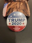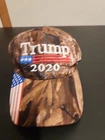 The product is a baseball cap featuring camouflage and American flag patterns, embroidered with "Donald Trump 2020." It is one size, adjustable with a hook and loop closure. The cap is lightweight, breathable, and suitable for casual occasions. It includes a Trump pin. This cap is themed around USA, MAGA, and Donald Trump, ideal for supporters wanting a Trump 2020 or 2024 accessory.