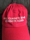 The Trump Make Common Sense Common Again MAGA Red Hat Cap is a patriotic and American-themed baseball cap made of lightweight and breathable cotton fabric. It features a solid red color with a logo design, perfect for casual occasions. The adjustable size ensures a comfortable fit for men who want to showcase their support for a particular cause or candidate. The cap is a statement piece that reflects a sense of national pride and identity. Item is used and therefore shows signs of wear see photos for any details, measurements and/or flaws. Highly suggest that you clean the item before the first use to cleanse any spots or stains.