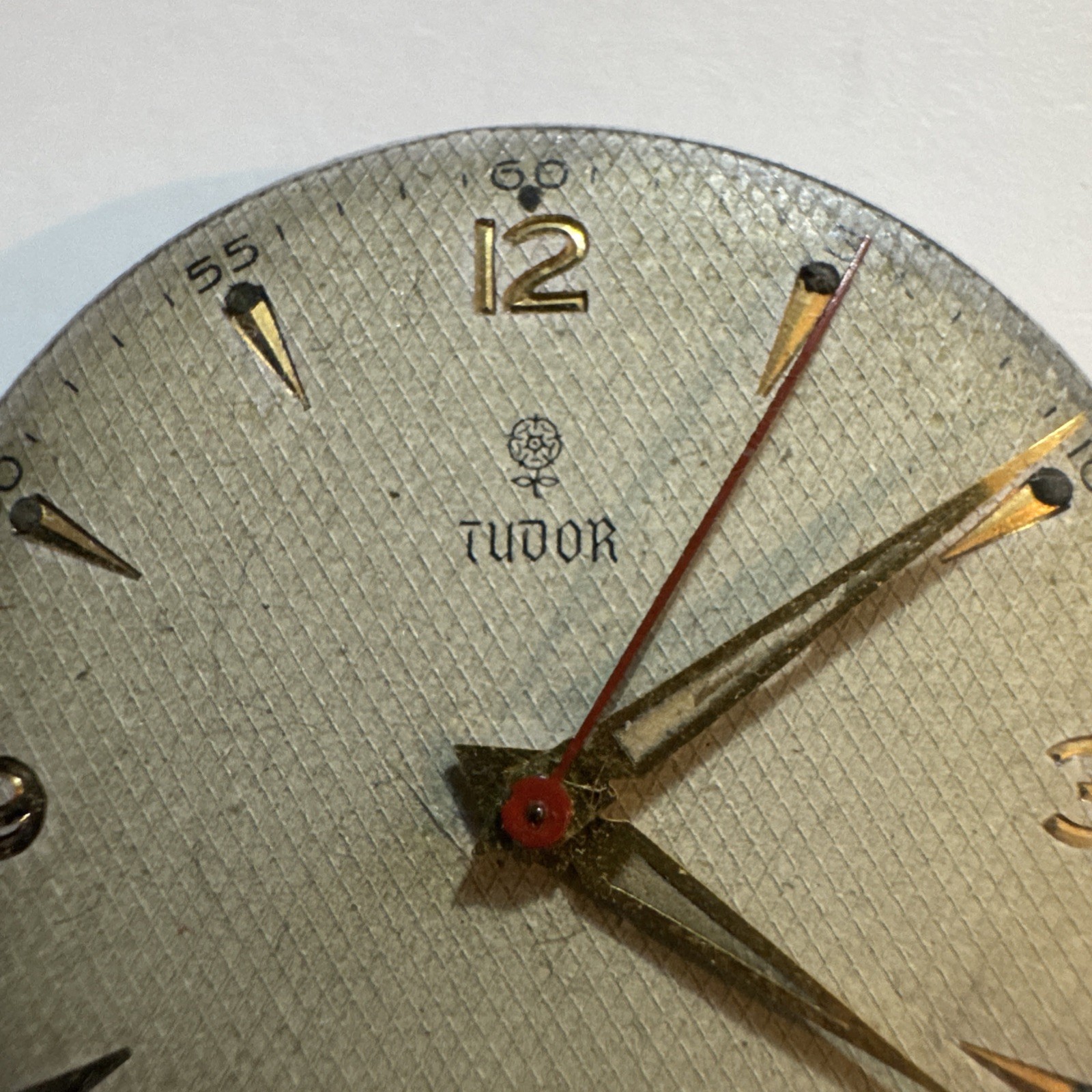 Tudor 1506 or 1412 watch movement, 30mm dial, winder and hands. Was from a working watch which I have regrettably sold farm and band for scrap value. Related wear and slightly bent second hand selling as for spares or repair due to age Please see added pictures for more details Thankyou Will Ship worldwide Happy bidding to all
