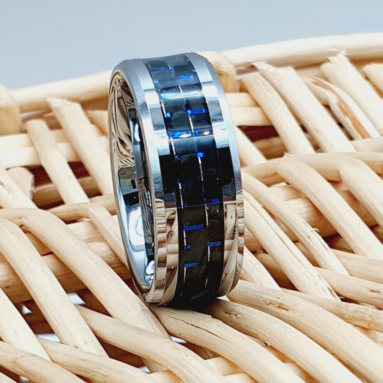 Blue Carbon fiber Tungsten Wedding Ring 8mm Personalized Blue Men's Women's Ring β Free Engraving π Order comes in gift box! β Available Ring Sizes: 5, 5.5, 6, 6.5, 7, 7.5, 8, 8.5, 9, 9.5, 10, 10.5, 11, 11.5, 12, 12.5, 13, 14, 15 β Width: 8MM β Metal: Tungsten Carbide β Comfort Fit For engraving font style please see image in listing and mention font you want to engrave while placing order. -----All Laser Engraved Orders cannot be exchanged or returned.----- If you are not satisfied with your purchase from us you may return the item within 30 days with a full refund. This policy does not apply to all custom engraved items. Thank You