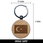 Turkey Flag Engraved Wood Round Keychain Tag Charm