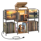 2-Tier Turntable Stand with Power Outlet & Vinyl Storage