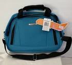 This turquoise tote bag from Rockland is the perfect travel companion. With a 14" size, it fits comfortably under most seats as a carry-on, making travel stress-free. The bag is made of durable polyester material, ensuring its longevity. The unisex adult bag features a soft case, making it easy to store and carry around. The tote also comes with a strap for easy handling. The solid pattern and turquoise color make it a stylish accessory to any outfit. Ideal for both personal and business travel, this Rockland tote bag is a must-have. New with tags, size 14 inch x 5.5 inch x 11.5 inch