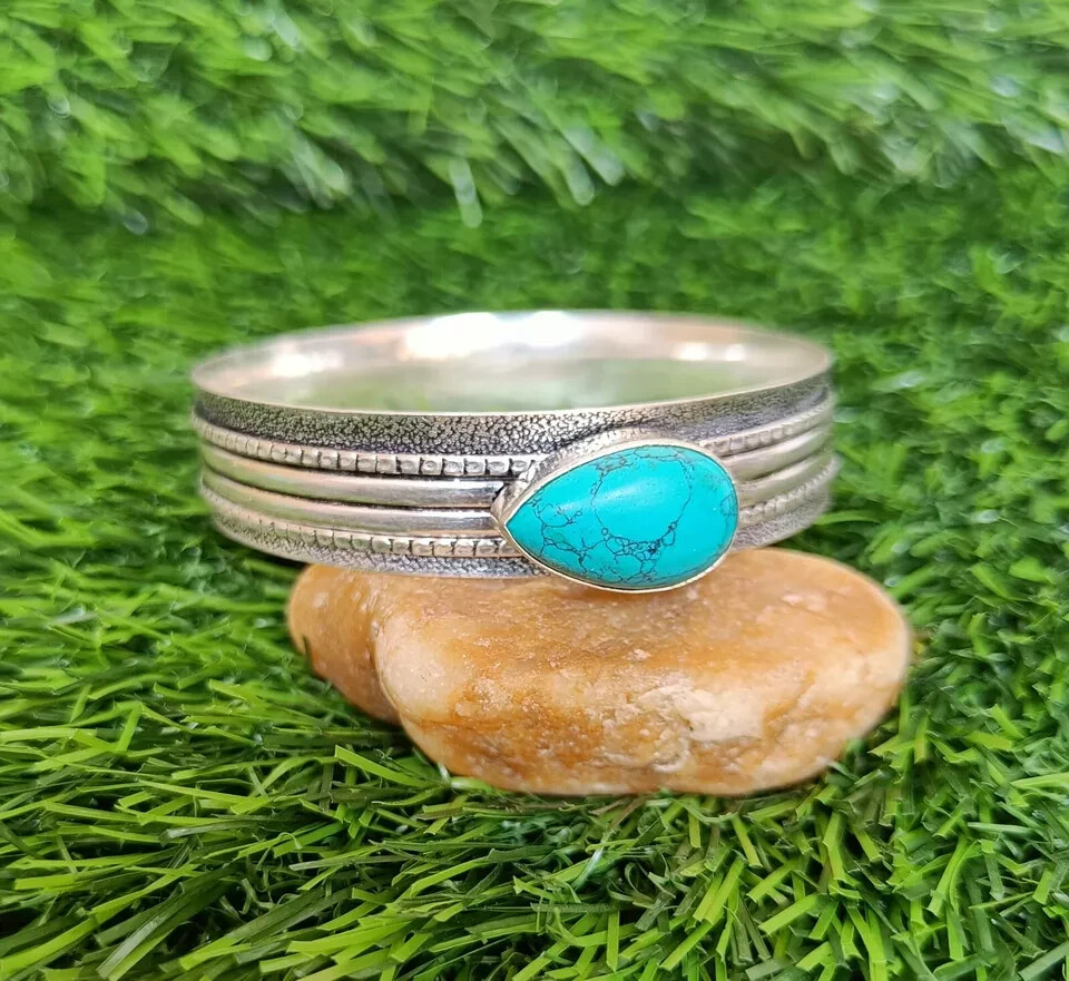 Turquoise Bangle 925 Sterling silver Spinner Bangle, Two Band Spinner Bangle, Stackable Bangle, Silver Hammered Bangle, Silver Bracelets Gift for Her / Him, Handmade Bangle, Hallmarked Jewelry, Statement Jewelry, Bangles for Wife, Gift for Jewelry Product Details: ♥ Purity: 925 Silver, ♥ Gemstone: Turquoise Size: 8 inches ♥ Length: Chose your size ♥ All my Designs are original ✓ ♥ All Size Available ♥ Each stone is set professionally - Real Jewelry artisan work ♕ ♥ You will receive a Ring like the one in the pictures ♕ ******************************************************************************** ♥♥♥♥♥♥♥♥♥♥♥♥♥♥♥♥♥♥♥♥♥♥♥♥♥♥♥NOTE♥♥♥♥♥♥♥♥♥♥♥♥♥♥♥♥♥♥♥♥♥♥♥♥♥♥♥♥♥♥♥♥♥♥♥ You will receive a Bangle like the one in the pictures. This Bangle have 925 Stamp. Suitable for use in everyday situations or can also be used as a gift. SHOP DETAIL: - >HANDMADE JEWELRY >BULK IN JEWELRY-LIKE- PENDANT, RINGS, BRACELET, NECKLACE, BANGLE, WOMEN JEWELRY, MENS JEWELRY, Delivery SHIPPING: - SHIPPING-POLICY 10-12 BUSINESS DAY'S BY UPS FAST CORRIOR SERVICE IF YOU WANT QUICK ITEM THEN YOU WILL EXTRA PAID 15$ AND WHEN I WILL SEND YOUR ITEM BY DHSL\FED-EX Fast and neat delivery_ Occasionally these rings will feature tiny pinholes within their unique design. This is normal and occurs when the sand mold has tiny air bubbles during the hand making process. Stamped with "925" the quality hallmark and place of origin "Mexico". The best way to keep your ring shiny and clean is by leaving it on while you wash your hands with warm soapy water, dry ring thoroughly and gently. FEEDBACK ****************** Positive feedback is greatly appreciated, and we will do the same in return. Please do not leave negative or neutral feedback and allow us the opportunity to resolve issue. We are very fair and easy to deal with. If you have any questions, feel free to message me and I will be glad to respond! Have a terrific day! Thank you! NOTE : WE USED NATURAL GEMSTONES , SO STONE MAY BE LITTLE DIFFERENT .---------- Turquoise GEMSTONE Bangle ------------------- + HERE IS A LISTING OF SILVER Turquoise GEMSTONE BRACELET ABOUT BRACELET :- + MATERIAL - STERLING SILVER 925 + GEMSTONE - Turquoise + STONE COUNT - 1 Stone Jewelry style: Boho & hippie NOTE - CHECK ALL IMAGES FOR MORE DETAILS .. THANKS FOR VISITING OUR SHOP ... HAVE A NICE DAY Add a touch of elegance to your outfit with this stunning Spinner Bangle Bracelet. The bangle is made of 925 Sterling Silver and features a beautiful Turquoise Gemstone in a round, oval shape. The bracelet is eye-catching, stackable, and adjustable, with a bezel setting style that enhances the gemstone's natural creation. This Handmade Bracelet is perfect for any occasion, whether it's for engagement, Mother's Day, Christmas, Graduation, Wedding, Anniversary, Birthday, or Valentine's Day. The bracelet is also personalizable, with the option to engrave or create your own design. This unique piece of jewelry is a must-have for anyone who loves beauty, nature, travel, and places, as well as music and dance.