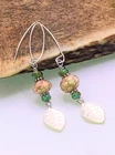This pair of artisan earrings were created using cream and brown jasper cushion stones as the focal of interest, with turquoise picasso glass Toho beads, silver findings, and a brushed silver leaf charm as accents. Earrings are approximately 2 inches in length and are fitted with silver fishhook ear wires. Thank you for your interest in my listing! Sherrie Anne Check out my store - Northwest Jewelry Creations - for more original creations! ********* New items added daily! *********