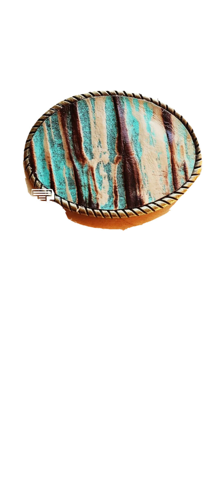 Rope Edge Cowboy Turquoise Leather Belt Buckle. This unique statement piece is the perfect accessory to complete your wardrobe. We offer hair-on-hide leathers or embossed hand-finished styles. Gorgeous Statement Piece Approximately 4" long by 3" wide. Antique gold finish Easily attaches to any belt with snaps or screw-in rivets
