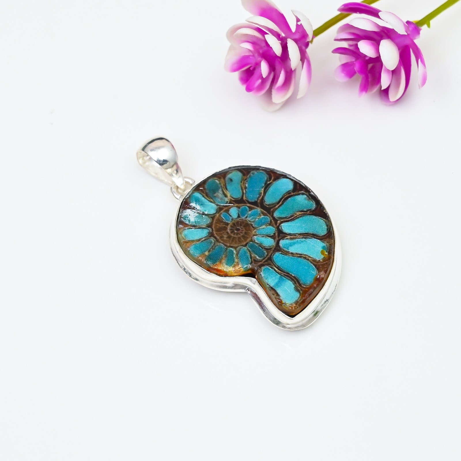 $ 10.56Turquoise Ammonite Gemstone Pendant in 925 Sterling Silver Jewelry Birthday Gift