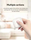Tuya Smart WiFi/Zigbee Switch Push Button Switch 2Gang 6 Scene Wireless Smart Home Remote Controller Automation Scenario Switch NOT:Zigbee version switches support three actions:click,double click, and long click.WiFi version switches only support two actions:click and long click.WiFi version not double click . You can set your customized actions for each of them. HIGHLIGHT: 【Multiple keys】Each key supports three key events: one click, double click, and long press. Each trigger can be bound to a different set of operations. 【Intelligent linkage】The wireless double key switch can link the intelligent appliances at home to enable/disable the intelligent appliances at home with one key. 【High precision connection】Wireless double key connection has high precision and wide range. 【Ultra-low power】Wireless dual-key switch has low power consumption and long battery life. 【Easy installation】Wireless double key switch can be attached to the wall or can be directly held for use. Specifications Product Name: Wireless Switch(2 Gang) Dismensions: 21*51*16.5mm Weight: 18.5g Battery: AAA Working Temperature: 5℃-60℃ Wireless Protocol: 2.4Ghz WiFi Zigbee 3.0 Working Humidity: 20%RH-80%RH Working Voltage:DC 3V Package Included: 1*switch ,1*manual