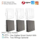 ZigBee Wall Touch Smart Light Switch with Neutral Wire/No Neutral Wire,No Capacitor Needed Smart Life/Tuya 2/3 Way Muilti-Control Association Remote Control Works with Alexa,Google Home Hub Required By Moes Main Features: 1.New design with neutral wire required and single live wire featured in one switch panel;No neutral wiring required for the single live wire version;Wire the neutral wire on the switch when needed;No capacitor needed for the new update version for better user experience without noise from electric current;Tuya Zigbee hub is required for the normal use of this switch,featured as much compatibility with tuya smart devices than any other hubs. 2.New idea for 2/3 Way circuit (two switches control one light)that is explained as multi-control association of this switch to other smart switches in App; ON/OFF relay status as remember last status when power off and backlight switch setting in Smart Life App for better sleep at night; capacitive touch control, turn on/off your light with a single touch and scratch resistance glass panelgives the best look to blend with any wall design. (Note:You can multi-control associate of this switch to multiple different switches,but several gangs on one switch is not available,only one gang on one switch can be associated for multi-control.) 3.Differ in features from traditional common switch,this smart switch is able to be controlled by various ways alone with the best value like App control,touch control and voice control;achieve multi-control by associating to other smart switches to get 2/3-way circuit for your house lights. 4.Compatible with Alexa,Google home and Yandex allows free voice control;remotely control devices and intelligent settings allowed on your smart phone via Smart Life/Tuya App wherever you are; Take full control of connected appliances with timers, schedules and countdown (1/5/30 mins, 1 hour, etc.) with the app; share control with family and friends for added convenience 5.No more worries about purchasing the wrong version for your house wiring limited;only supports 2.4G network; includes full 2-year warranty and 60-day refund guarantee for complete satisfaction One ZigBee Smart Switch With TWo Wirings Optional 2020 New Arrival Upgraded with More Personalized Points: Provide much more convenience and updates for your smart lifestyle with the price unchanged as before. Update 1: No Capacitor Required Ours:No more worry about being affected by the noise from the capacitor when sleep, with no capacitor required as complex installations anymore for normal use No capacitor required / one switch for two wirings optional Note: If there is no neutral wire in your house, just ignore the N position for wiring, and if there is one, just wire it for normal use Update2: One Switch For Two Wirings Optional Update 3: A New ldea For 2 Way Control Multi-control association of the switch to another ZigBee smart switch in the App for achieving 2 Way feature( two switches control one light) Note: There is no need to wire the new added switch to the light, only L and N are required for wiring. (for neutral wire version) Update4: New ON/ OFF Relay Status in App More personalized settings as ON/ OFF/ Remember last status when power off Update5: Backlight Switch with ON/ OFF Optional No influences on sleep. Smart Zig Bee Switch Intelligently control the device after connecting it to most ZigBee hub, Tuya ZigBee hub required for its much more compatibility with zigbee devices than other hubs Smart Life Tuya Remote Control Remotely control your switch wherever you are Hands-free Voice Control Free hands via easy voice control with Alexa and Google Home Note: Hub is not included in the package Timer Function Timing setting and countdown options Family Sharing Add device to your Smart Life App to get multiple control ways for controlling with your family together. You can create group in the APP to manage all the lights in your house and share the device to your family members Multiple people control one / One person controls more than one How to achieve 2 way/multi-control Step 1 1.Wire switch 1 to N+L+L1 2. Wire switch 2 to N+ L, no light needed Step 2 1. Complete the confguration of switch 1 to APP 2. Achieve way by associating switch 1 to switch 2 Note :For neutral Wire required version only Step 3 Now you can manual and app control one same light with switch 1 and sWitch 2 at the same time Step 4 Multi-control associate to more switches by repeating steps above to acheive 3 or more sWitches to control one Same light Note: No capacitor required for easy installations. Note: No capacitor required for easy installations Note: If there is no neutral wire in your house, just ignore the N position for wiring, and if there is one, just wire it for normal use. Parameter: Working voltage:AC100-250V,50/60Hz Current type:Total 10A Inductive load(LED/CFL):3-120W Resistive load(Incandescent):3-300W for 110V;3-600W for 220V Power consumption:≤0.5W Working temperature:0℃~40℃