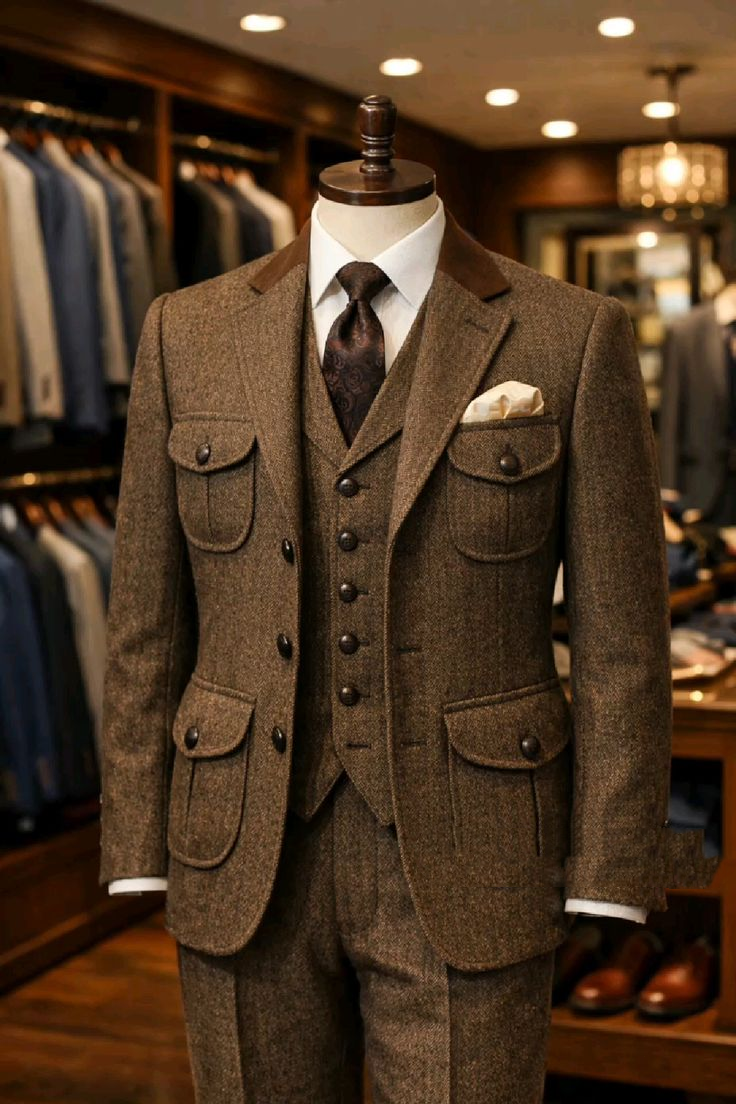 $ 31.13Vintage Herringbone Men's Suit Winter Tuxedo Jacket Tweed Woolen Outdoor 3Pcs