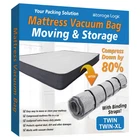 Whether you are moving to a new home or packing mattress for storage/shipping/returns, our mattress vacuum bag got you covered. With our mattress vacuum bag, you can easily compress a king-sized mattress down by more than 80%, as flat as a pancake. Rolled up compressed mattress can fit in a car/back of SUV/top of your car. Now, there is no need to rent expensive truck. You no longer need to worry about having to patch the walls or fix the light while moving the mattress upstairs/downstairs with tight hallway. For storage purpose, our bags are an ideal solution for keeping your mattress tightly packed and adding more storage space to your garage, loft, basement or any storage area. You can also use our mattress vacuum bag to return or ship unwanted mattress. Our mattress vacuum bag adopts extremely thick & durable 100% new premium PA+PE heavy duty material. The mattress cover is rip & tear resistant, and prevents punctures. Our bag provides the ultimate protection to safeguard your mattress from air, moisture, water, dust, dirt, and bedbugs. Use any vacuum cleaner to suck the air out of the mattress. Our unique Double-Zip seal ensures no air gets back in! Roll the mattress, use any rope/strap and tie around the rolled mattress to hold it rolled. 3 Sizes Available: King-size bag fits King and California King mattress; Queen-size bag fits Full, Full XL, and Queen;Twin/Twin-XL-size bag fits Twin and Twin XL. Instructions on how to compress mattress using our Mattress Vacuum bag is included in the package. CAUTION: 1. DO NOT USE SHARP OBJECT TO OPEN THE BOX. 2. DO NOT DRAG THE BAG AFTER VACUUMING THE MATTRESS. 3. PLEASE USE ROPES/STRAPS TO HOLD THE ROLLED MATTRESS. At , we're dedicated to producing quality products that we know you'll love. If you are not completely satisfied with your purchase, us so that we can be of help. And of course if you love your mattress vacuum bag, we want to hear that as well! No More Hassle Moving Mattress: Our vacuum mattress bag is a must-have packing supply for mattress transportation and storage. You can vacuum and move mattresses just by yourself. With our mattress bag, moving mattress is no longer a challenge. 80% Compression Ratio: Compress your mattress down to a fraction of its size. Rolled up vacuumed mattress easily fits in a car/back of SUV/box. Our mattress compression bag works with vacuum cleaners. Leakproof & Sealable: Our mattress space bag adopts premium PA+PE material, which prevents punctures and serves as mattress protector from air, dust, dirt. Featured Double Zip & Stay-on Clip: Our unique Double-Zip seal is designed to get air out in the vacuum process and ensures lasting compression. Stay-on clip ensures that the clips does not fall off the zipper or missing. Precise-sized Bag Dimension & Matttress: Designed for twin/twin-xl mattress. The transparent clear bag makes it easy to find and identify mattress. Works with latex, foam mattresses and mattress companies that ship their mattress in a box. The bag does not compress spring mattresses.