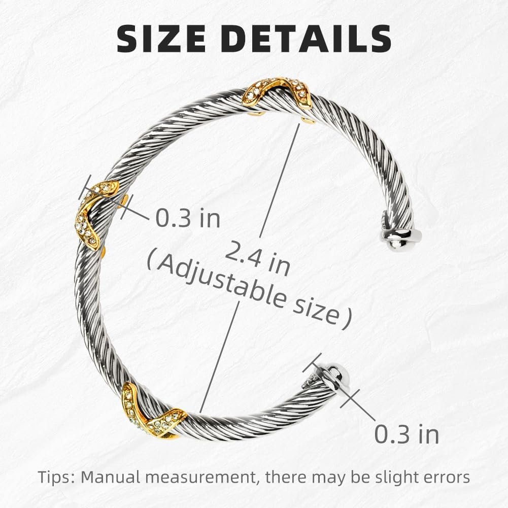 Store New Arrivals Add to Favorite View Feedback Contact Fast deliveries to the customer's home Quality customer service John Make the customers happy! Twisted Cable Cuff Bracelets for Women 5Mm Stainless Steel Cuff Bangle Bracelet Designer Inspired Jewelry Valentine Day Gift Description Gem Type no gemstone Color C Silver & Gold Product Dimensions 2.76 x 2.17 x 1.77 inches Material Stainless Steel Item Length 2.76 inches Department womens Clasp Opening Design ABOUT US We offer the best prices around on high quality products. Our E-store includes media such as books, movies, music and games while offering electronics, toys, sporting apparel, clothing, tools, general home, garden items and more. SHIPPING We are always working hard to ensure your package arrives as soon as possible. Please understand that some factors like weather, high postal traffic, and the performance of shipping companies are outside of our control. We offer free shipping to the lower 48 states and ship within 2 business days of payment, usually sooner. We do not accept P.O. Boxes. Please provide a physical address. For shipping outside of the continental USA, we only use eBay's Global Shipping Program. The item is shipped to KY and then sent to the rest of the world. International customers are responsible for all duties and taxes. Continue to 'check out' to calculate costs for shipping the item to your country. Messages regarding eBay's Global Shipping Program MUST be directed at eBay EXCLUSIVELY. RETURNS We offer a 30-Day Return Policy on items in which you are not completely satisfied with. You have the option of a full-refund or an exchange of the item. No returns are available on items shipped outside of the USA PAYMENT We accept PayPal. CONTACT US This page content is yet to come Please ad us to your favorite seller and visit again later Thank You CUSTOMER SATISFACTION We try our very best to make sure every customer is completely satisfied. If there's a problem, message us! We're happy to help. WE ACCEPT