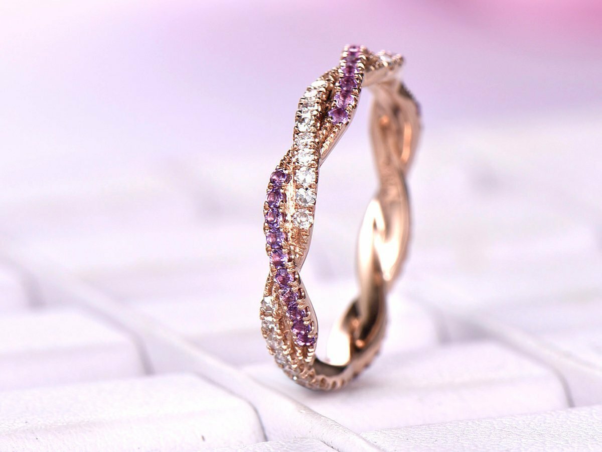 Twisted Infinity Purple Amethyst Band Ring in Rose Gold Plated Silver