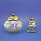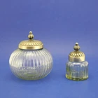 Two Glass Dressing Table/Vanity Jars with Metal Lids - 12cm/4.75" & 16cm/6.25" High Two clear ribbed glass dressing table or vanity jars with loose fitting metal lids. No visible makers mark or labels. Dimensions (Approx.): 8cm/3.2" diameter x 12cm/4.75" high including lid and 16cm/6.25" diameter at widest point x 16cm/6.25" high including lid. In very good condition with no chips or cracks, apart from a nibble to the inside edge of the rim of the large jar but please judge the condition for yourself from the photographs which form part of the description. Any questions, please ask. UK postage rate is for Great Britain mainland only. International shipping is handled by eBay's Global Shipping Progamme (GSP). If no UK or international service is shown please enquire before bidding. Costs may be reduced by shipping multiple purchases together (not for GSP) but only if requested before paying. Can be collected in person from Enfield EN2 area with cash payment - within 7 days please. Please note: Most of my items have had more than one owner and can be quite old. In reading my descriptions please accept I am not an expert; I try for accuracy but welcome help in improving the listing where I've got it wrong. With respect to condition you should expect most items to be less than perfect with signs of age on older items and wear on used items. If you are looking for items 'as new', unless I've stated 'new' or 'unused', please do not buy as you may be disappointed. Postal orders, cheques and bank transfers accepted by arrangement if you don't have a Paypal account. Please contact me before bidding. A0506-14::W00830::00000