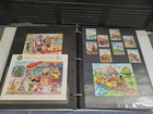 Two separate Disney stamp albums with at least 30 pages of collectible stamps. Gently used. The albums are older and have some discoloration, but in great condition. The pages are easy to turn, and there are some blank spaces for additional stamps. I could not include all of the pages for picture references due to the limit of 24. But if anyone has any questions about a particular stamp collection, please email me, and I will happily send a picture for reference if that collection is in the album. Thank you!