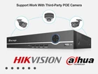 13V/15V Cameras or Cameras without ONVIF protocol cannot be connected for use Sopport Ultra HD 4K Display H.265 POE NVR H.265 More Clear , HD resolution offer you best image qualityin a lower bit rate. Save more storage space,can reduce 40%-50% file size,save your HDD storage space and reduce your purchase cost. H.265 only need a lower bandwidth,speed loading faster,play video more smoothly POE Advantage, Why Choose POE? Don't need extra power cables or adapters or switch.Plug And Play and easy setup. Save Money and Convenient,POE NVR = NVR + POE Switch Support be extended to 8CH/16CH NVR Our 8CH POE NVR Can be Extended to 16pcs POE Camera if use 8CH POE Switch Together 4CH POE NVR Can be Extended to 8pcs POE Camera if use 4CH POE Switch Together If you want to buy 4CH/8CH/16CH POE Switch, please click the picture Techage POE CCTV System Max support 100 meters transmission distance Our NVR Supports up to 14TB HDD Install and Connect it It can be quickly and easily setup by anyone. Instantly see live video using your computer, tablet, or phone from anywhere. Don't need extra power cables or adapters or switch. Support work with third-party cameras Advanced Human Detection Recording The humandetection recording function: when human is detected the NVR will save the footage into hard disk without missing any important events. E-mail Alerts NVR will send you mail automatically if there is any motion detected. Video With Smart Playback Smart playback available with customizable searching area, playback time is greatly reduced by speeding through unimportant videos. Remote Access Anytime, Anywhere Based on P2P (peer to peer) technology, support plug-and-play installation. Access the IP camera through its web interface via Internet Explorer, also comes with a free smartphone App (Android & iPhone) for remotely view from anywhere. Support iOS and Android Device Access. Scan QR-Code to login. Download free app in Apple App store / Google play. H.265 4K/8MP POE NVR(with Audio out) You can use this POE NVR connect Audio Camera! Support Audio Recording H.265 8CH 4K/8MP Support HD output VGA HD output Support ; access third party Support web, CMS, center platform management software MYEYE Support multiple network services (support DHCP, FTP, DNS, DDNS, NTP, UPNP, EMAIL, IP searches, Alarm Center, etc.) System resources :Simultaneous multi-channel real-time recording, playback, network operation, USB backup Display quality :4K/5MP/4MP/1080P Audio compression: G.711A Recording mode: Manual>Alarm>Dynamic Detection>Timing Record storage: HDD Backup mode : Network backup, USB hard disk, USB burner, SATA burner Network interface:8CH POE Port, the standard POE IEEE802.3af/at Protocol P2P Remote View: Support iOS, Android 20+ Languages Available: Russian, English, Italian, Portuguses, Spanish, French, German etc 8CH POE NVR can support 8CH 1080P / 8CH 5MP / 8CH 4K / 16CH 5MP 4CH POE NVR can support 4CH 1080P / 4CH 5MP / 4CH 4K / 8CH 5MP 1, 8CH POE NVR can support 4K/8MP max, you can connect 2MP,4MP,5MP,4K cameras with our NVR. but you need buy our 5MP/4K cameras , then they can work together ! 2, If you want connect 16CH 5MP cameras , you buy to buy a extra 8CH POE Switch , please contact us buy it ! 4CH POE NVR can support 4CH 5MP / 8CH 4MP Package Included: 1 x4CH/8CH 4K POE NVR 1 X USB Mouse 1 xUser Manual 1 X Power Adapter for NVR 1 X Remote Control (No Battery) Note :Our POE NVR include the remote control ( without battery )
