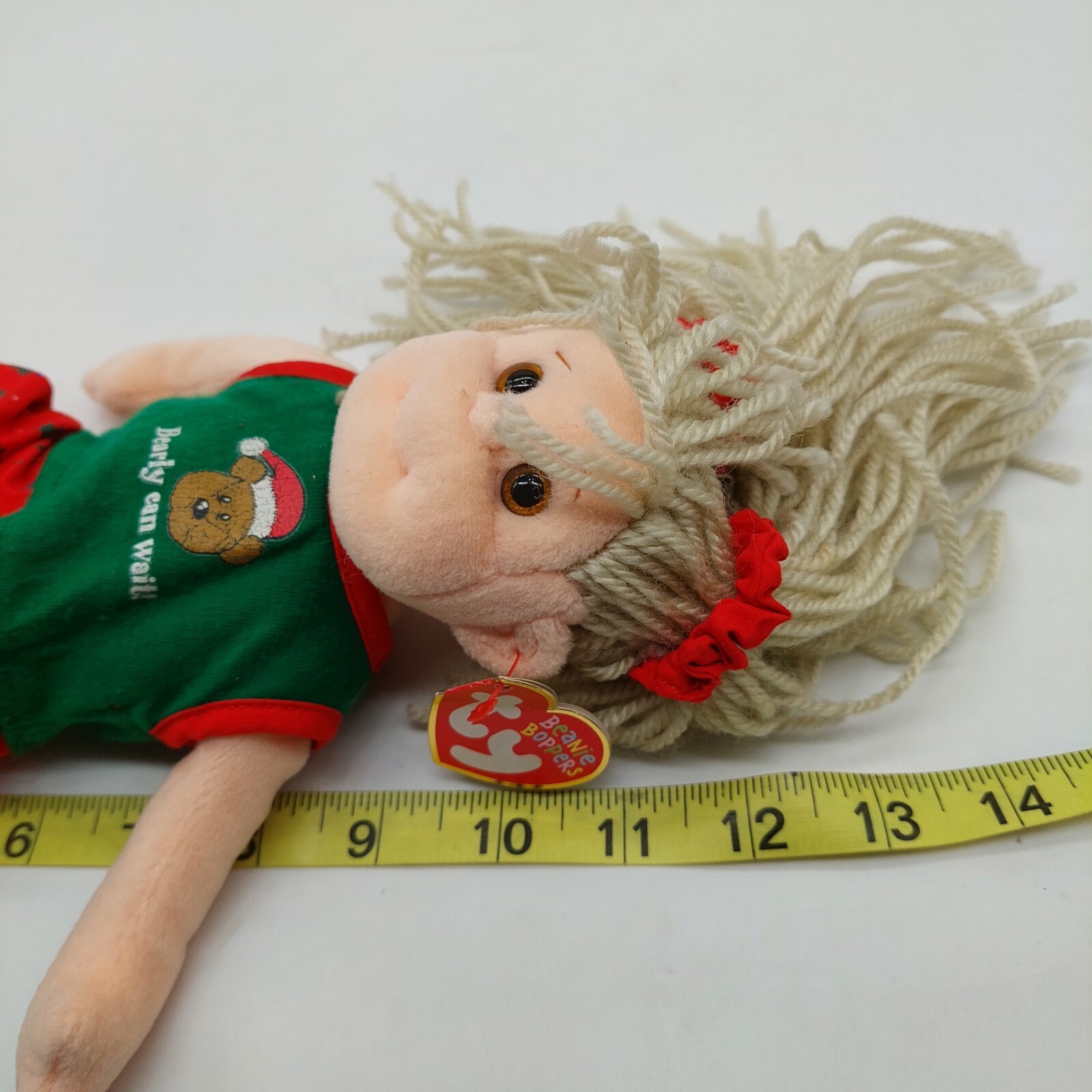 Absolutely love this adorable Jolly Janie plush! The polar bear design is so cute with her little slippers and pigtails—perfect for collectors. She has some gentle play wear but still looks fantastic, full of charm and personality. A great addition to any Beanie Boppers fan’s collection!
