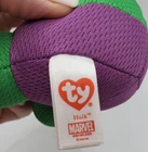 Add some super-powered fun to your collection with this Ty Beanie Babies Marvel HULK Plush Toy! The green machine is ready to smash his way into your heart with his soft and cuddly exterior. With his trademark scowl and ripped muscles, he is ready to take on any adventure you can imagine. This collectible plush toy stands at 7 inches tall and is perfect for fans of all ages. With his bold colors and attention to detail, he makes a great addition to any collection or a wonderful gift for your favorite superhero enthusiast. Don't miss out on the chance to own this iconic Marvel character in plush form!