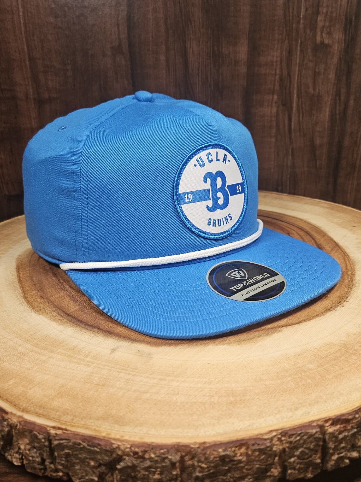 Support your UCLA Bruins with this stylish Top Of The World adjustable hat. The hat features a solid blue color with a UCLA Bruins patch, perfect for any occasion. The rope and snapback adjustable design makes it comfortable to wear, while the baseball cap style is perfect for sports fans. This NCAA athletics hat is perfect for basketball games, football games, parties, travel, workwear, and business. Get your hands on this brand new hat with tags, and show off your UCLA Bruins pride.