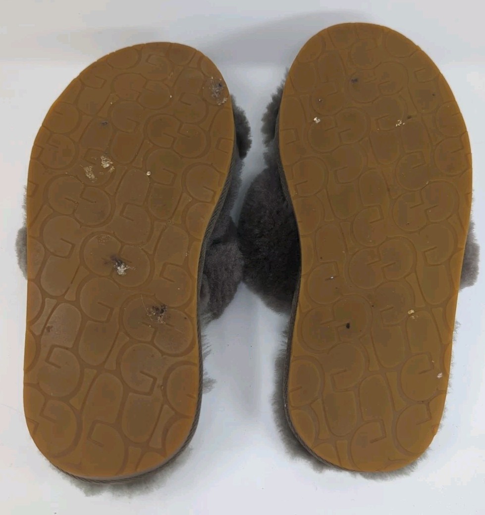 UGG ABELA FLUFFY SHEEPSKIN STREET FRIENDLY SLIPPERS / SLIDES SLATE GREY IN COLOR US WOMENS SIZE 7 / EURO 38 For both indoor and outdoor use Fluffy sheepskin uppers Genuine sheepskin sock liner that naturally wicks away moisture and helps keep your feet dry, warm and cozy Lined with sheepskin Street friendly rubber sole