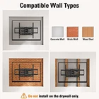 [Universal Design] This TV wall mount is compatible with most TVs of 42-84 inches and weighs up to 100 lbs. It also has a maximum VESA of 600mm x 400 mm mounting hole space. Please Note: This TV mounting bracket is NOT for drywall alone installation! [Intriguing Flexibility] This full motion TV mount tilts the TV 5° up and 15° down to avoid glare and swivels the TV left or right according to your seat position. It pulls out to 16.6 inches and retracts to 2.5 inches, allowing your TV to move. After installation, +/-4° post-installation adjustment allows for optimum TV leveling. [Sturdy and Safe] TV wall mount swivel and tilt designed with 6 articulating arms. The Wall mount for TV is constructed of high-quality cold-formed steel for the ultimate safety and reliability to keep your TV and family safe. [Hassle Less Installation] wall mounts comes with clear instructions and all hardware in pre-labeled bags. The paper template and 4 cable clips are good helpers to make the installation easier and quicker. Concrete anchors can be provided upon request (Anchor Size: φ10x50mm). [Installation Support] What are you waiting for? Let 's get that TV mounted! Have any pre-purchase or installation questions? staffs are 7 days a week to help if you run into a snag.