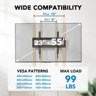 Will the TV wall mount fit my TV? First, please check your wall for wood studs, it cannot be used on concrete wall or drywall alone. Anchor needed is for concrete wall installation. Next, the weight of your TV should be less than 99lbs (45kg). Then, mounting holes distance on the back of TV must be less than 16" (400mm) horizontally and 16" (400mm) vertically. Your TV should be at least 26 inch. Otherwise, you will see the bracket. In addition, please check the area inside the 4 mounting holes to make sure there are not any plugs. Otherwise, the plate may block the plugs. Finally, please check possible blocked cable/input. Specifications: Fits 26" to 55" flat panel TVs Supports TV weight up to 99lbs (45kg) Fits VESA mounting hole patterns:100x100mm/200x100mm/200x200mm/300X200mm/300x300mm/400x200mm/400x300mm/400X400mm Low-profile design with a scratch-resistant finish, offers a stylish look and save your space.Tilts downwards from 0° to 8° for enjoy a comfortable view of your show. Open wall plate enhances cable management options. Click, lock and release offers seamless adjustment, safely and easily place your TV where you want it most. Wall mounting studs distance up to 16" Package includes: 1x TV wall mount 1x Standard mounting hardware 1x 6ft high speed HDMI cable 1x magnetic bubble level 3x Cable ties 1x User manual UNIVERSAL DESIGN: Rigorously safety tested and UL listed, Our ultra strong TV mount fits most 23"-55" TVs weighing up to 99lbs. Solid and sturdy TV bracket with compatible faceplate that fits VESA patterns from 100x100mm to 400x400mm. Can be conveniently mounted on 8" or 16" wood stud walls and concrete/brick walls. Please check the VESA pattern of your TV before purchasing.Please do not install on drywall alone, SAVE SPACE AND ANTI GLARING: Our TV wall mount sits a mere 1.3“ to the wall for a low-profile modern look. Features 0-8° tilt allows you to direct the screen down to reduce glare and improve your viewing angle.So you can choose the most comfortable position while reducing glare and neck/eye strain. SAFE AND SECURE: This tilt TV wall mount has an open wall plate design that allows you to mount it directly over electrical outlets for a super clean installation. Pulling straps can help you locks and releasesTV breezily and the elegant panel edges prevent your TV from slipping off. EASY INSTALLATION: With all required mounting hardware and a detailed instruction manual, they will helps you to install this TV wall mount without any hassle. Friendly After-sales Service - our TV wall mount is constructed from high quality steel materials, we are so confident in the construction, strength and durability of this wall bracket. Please feel free to contact us anytime, rain or shine:-)
