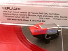 MG-09DE NEW UNIVERSAL stereo MG-09D MAGNETIC CARTRIDGE WITH ELLIPTICAL STYLUS FOR hundreds of turntable models Pfanstiehl Pfanstiehl is pleased to have the Chu-Denshi MG09DE added to our line. This fine cartridge is made in Japan and was previously offered in Sanyo-Fisher turntables. This 1/2" mount version is finding wide use in many new turntables. It is a general purpose model with tracking range of 1-3 grams, output voltage is 2.4mV and the separation is24dB. It comes with the 901-DE Diamond Elliptical Stylus. Headshell not included. Ad is for cartridge and stylus only. Model Pfanstiehl MG-09DE Cartridge fits needles below Popular Replacement for Fisher ST-09, MG-09, ION and others Description Brand New (factory sealed box) Generic replacement stylus Elliptical Diamond tip needle 1 - 3 grams tracking pressure Speeds: 33 & 45 RPM REPLACES needles listed below NEEDLE S AUDIO EMPIRE S111 S190LT S290LT S333 S390LT FISHER NEEDLES 4-1579-70300 4157970300 ST-09D ST09D ION ITTUSB05 KENWOOD N-69 N69 P31 P43 P-31 P-43 OTTO ST09D ST59U ST868J STW40J W40 SANYO ST-09D ST09D STW-17J 4-1579-70300 SHARP STY-158 SONY CN-230 CN-234 CN234 CN-235 CN251 CN-251 CARTRIDGES FISHER MT-9001 MT9001 KENWOOD V-69 SANYO MG-09 ST09D ST09D STW17J MG09 SHARP 158 MODELS FISHER DAC-145 MT223A MT228 MT229 MT851 MT854 MT855A ION iTTUSB05 iTTUSB iTTUSB10 iTTCD10 TTUSB05 TTUSB TTUSB10 LPDOCK iTT03X iDJ03 iDJ02M OTTO DCX1000 DCX891 DCX900MD DCX901 DCXW17 DCX1050 DCX22 DCX702 PHILIPS F1395 FP320 SAMSUNG PL8400H SANYO STW17J W40 SONY PS-LX150H PS-LX150 PSJ10 PS-J10 PSJ20 PS-J20 PSLX44P PS-LX44P PSLX46P PS-LX46P PSLX47 PS-LX47 PSLX49 PSLX49P PS-LX49 PS-LX49P PSLX52 PSLX52P PS-LX52 PS-LX52P PSLX55 PS-LX55 PSLX56P PSLX56 PS-LX56P PS-LX56 PSLX57 PS-LX57 PSLX66 PS-LX66 PSLX150M PS-LX150M PSLX300H PS-LX300H PSLX350H PS-LX350H PSLX452 PS-LX452 SOUND LAB DLP1600 G056