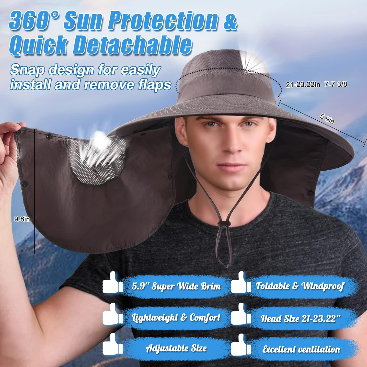 This hat is a game-changer for outdoor lovers! The wide brim gives amazing sun protection, and the removable neck flap is a lifesaver on extra sunny days. It’s lightweight, dries fast, and stays comfortable even during long hikes or fishing trips. The dark grey color looks stylish, and the waterproof material handles rain without a problem. Perfect for any adventure—highly recommend!