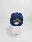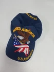 This was bought as a gift and never worn. Only displayed. No stains, odors or tears. This is a U.S. AIR FORCE RETIRED hat. 100% acrylic. Navyblue in color. Four vent holes on top. Six panel-structured. One size fits most. Adjustment in back U.S.AIR FORCE Above Strap Also. Embroidered