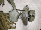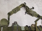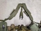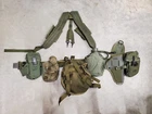 Used excellent condition US military web belt and suspenders with pouches, canteen, holsters, etc. See photos for exact item you will receive.
