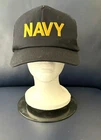 This is a US Navy snapback baseball hat made in the USA. The hat features an embroidered design, plastic mesh back, and a solid blue color. It is made of polyester, foam, and cotton materials, with a canvas fabric type. The hat is one size fits all, lightweight, adjustable, and breathable, suitable for travel, casual wear, and workwear in the summer, fall, and spring seasons. Please see photos for preowned condition. Stain on inside of hat. See photos