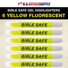 U.S. Office Supply 6 Pack of Yellow Bible Safe Gel Highlighters - Bright Neon Fluorescent Yellow Color Markers, Highlight On Any Paper - Won't Bleed, Fade or Smear Premium Gel Highlighters 6 Pack of bright neon fluorescent yellow Bible Safe Gel Highlighters. Premium twist-up gel stick design markers that highlight while gliding smoothly across a page. Archival quality Bible Safe Gel Highlighters that are ideal for color-coding Bibles. Also safe for highlighting on any paper surfaces like study, text, and legal books. Highlight Bibles to emphasize meaningful words, phrases, and passages. Includes study guide and a storage pouch. Glides On Paper Smoothly Twist-up gel stick design markers that highlight while gliding smoothly across a page. They apply highlights quickly and easily and won't bleed, fade or smear over other inks. They also won't dry out if left uncapped. 6 Pack of bright neon fluorescent yellow Bible Safe Gel Highlighters. Premium twist-up gel stick design markers that highlight while gliding smoothly across a page. Archival quality Bible Safe Gel Highlighters that are ideal for color-coding Bibles. Also safe for highlighting on any paper surfaces like study, text, and legal books. They apply highlights quickly and easily and won't bleed, fade or smear over other inks. They also won't dry out if left uncapped. Highlight Bibles to emphasize meaningful words, phrases, and passages. Includes study guide and a storage pouch. We're confident that you'll be delighted with our Bible Safe Gel Highlighters, Buy with Confidence: Backed by a trusted brand dedicated to your satisfaction, we ensure a hassle-free experience every time.