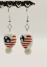 USA Flag Love Hand-Painted Red White Blue Heart Dangle Beaded Earrings Set