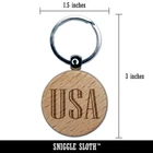 USA Patriotic Text Engraved Wood Round Keychain Tag Charm